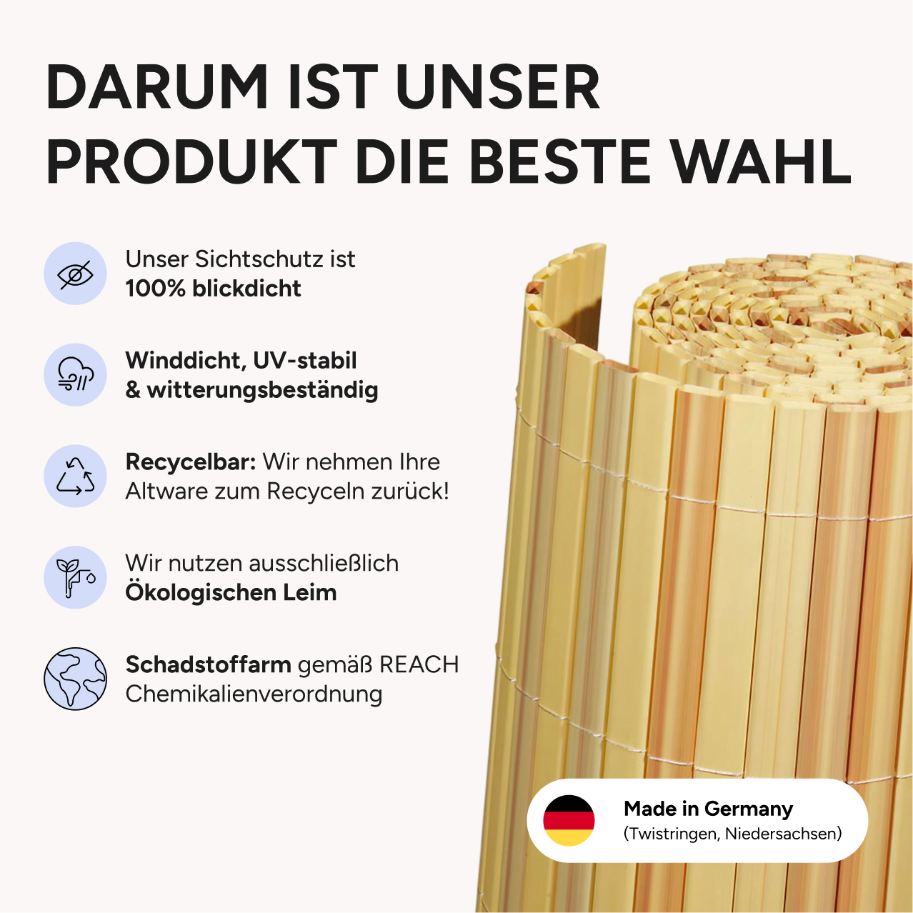 Material Sichtschutzmatte Kunststoff, bambus: Hart-PVC (UV- und witterungsbeständig)