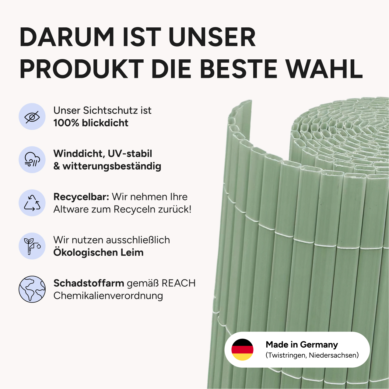Sichtschutzmatte Kunststoff, Rügen, 90x300 cm, sagegrün